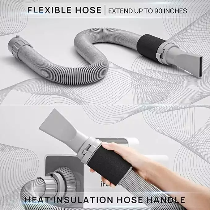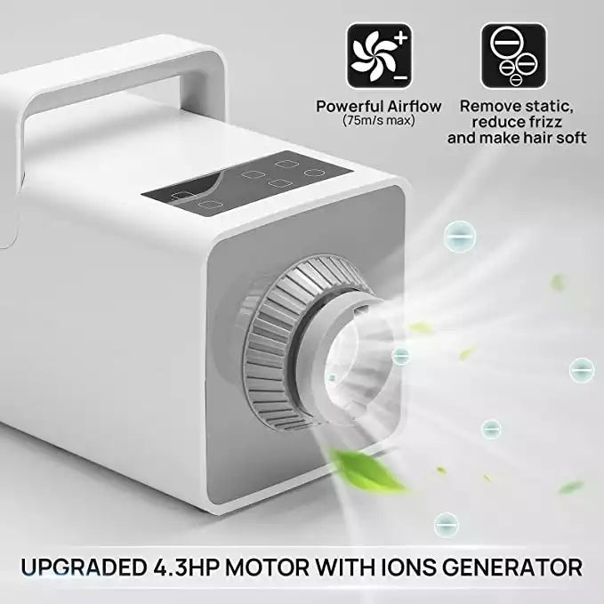 【4 NOZZLES & SPRING HOSE】The hose can extend from 0.55m/1.8ft to 2.3m/7.5ft. Comes with 4 different nozzles to satisfy all drying demands and to make shiny hair for dogs. Very handy to use.
