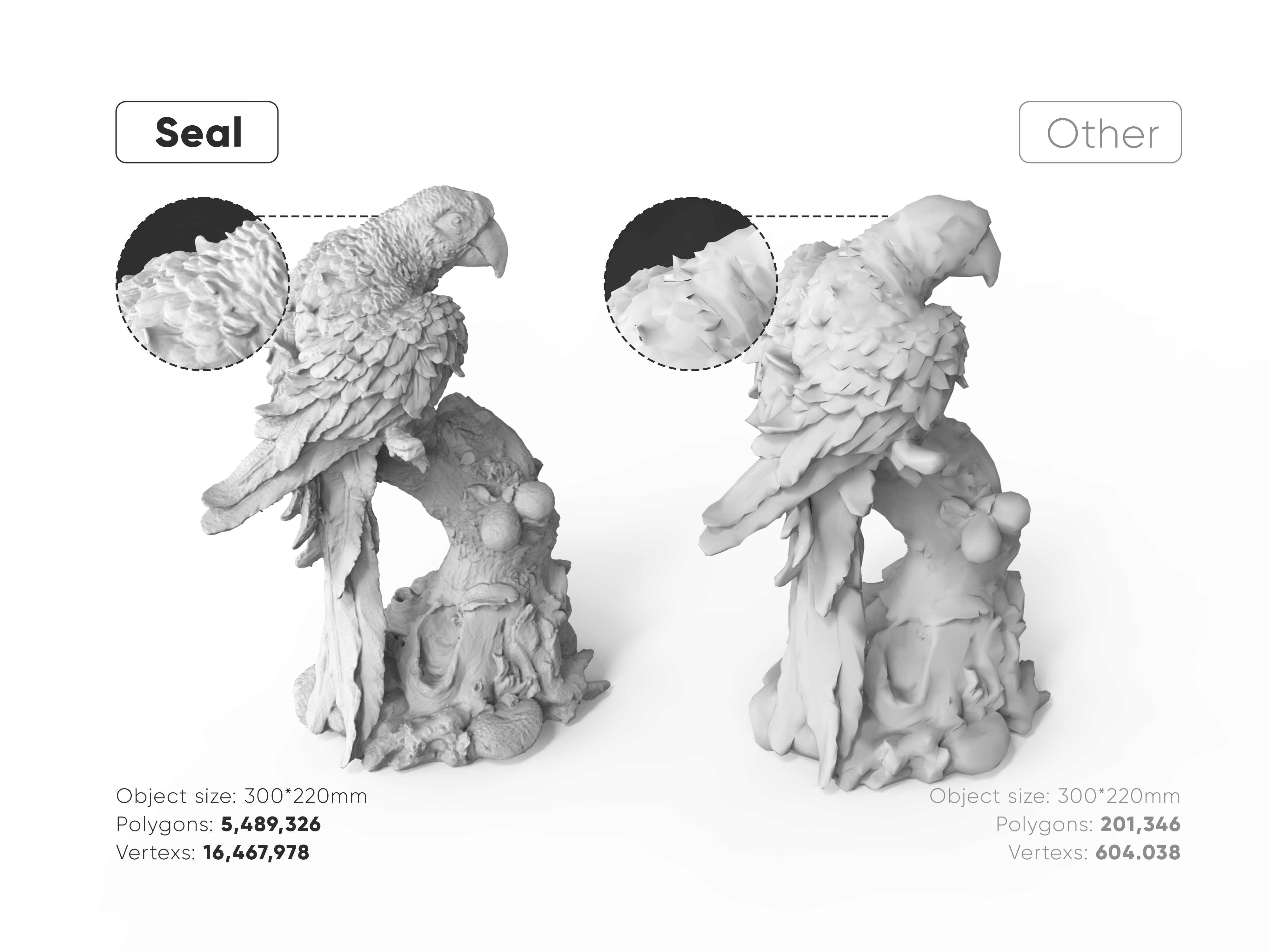 Take Seal's 200g lightweight design anywhere you need to scan! Experience smooth and quiet scanning with excellent heat dissipation and no fan noise.