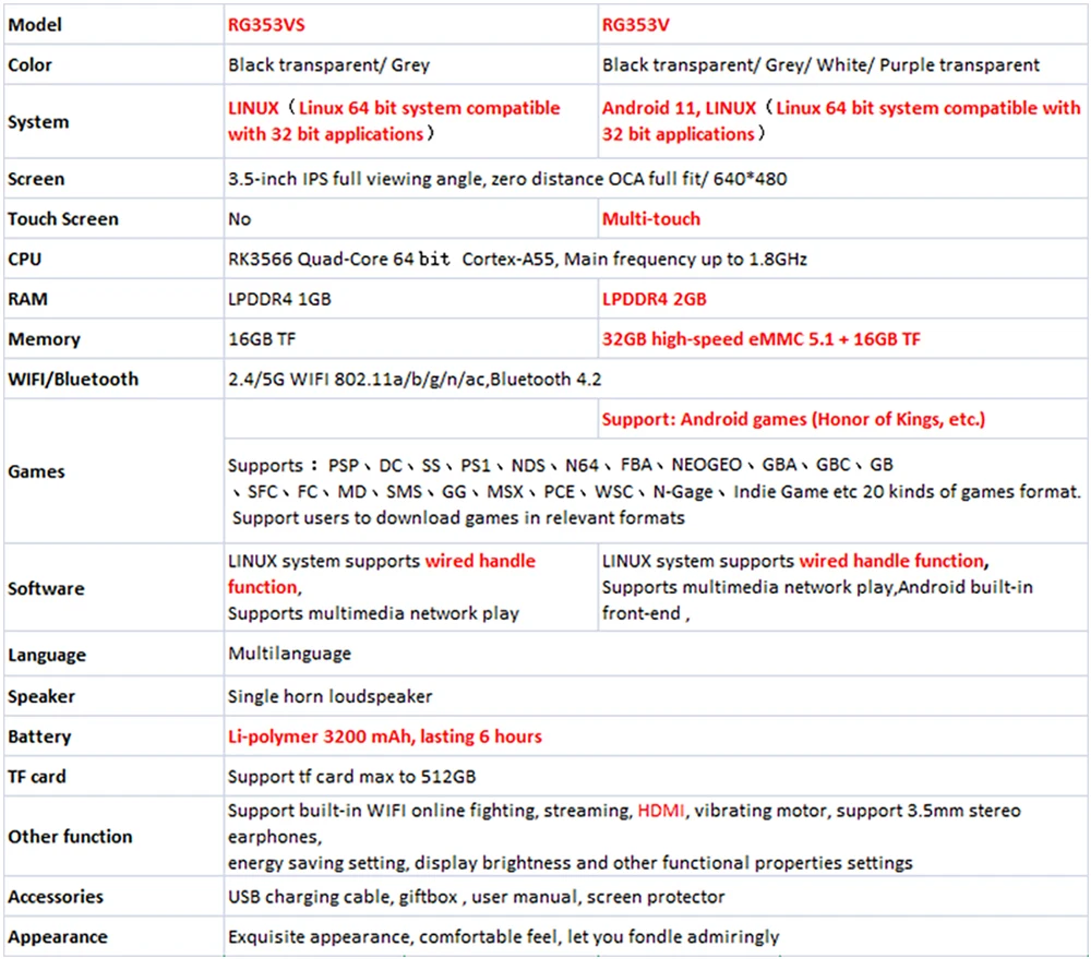 RG353V System: Android 11, LINUX(Linux 64 bit system compatible with 32 bit applications)