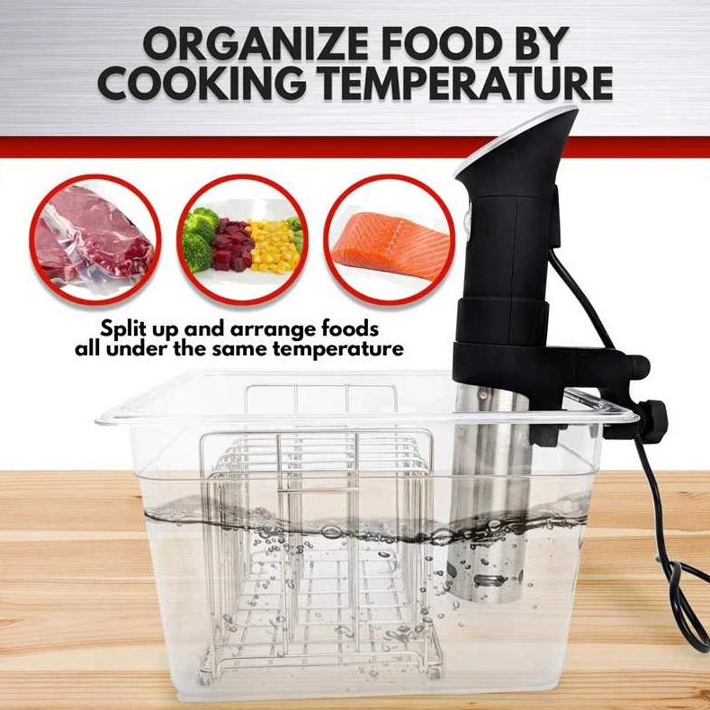 - COOK MORE EVENLY: Organize your pouches across the rack to cook more food in your 11 litre sous vide container with complete water circulation around every pouch.
