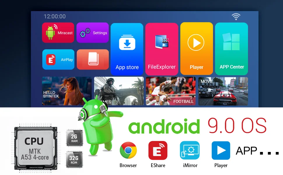 BYINTEK U70 Smart 3D 4K Android WiFi Portable 1080P Home Theater Video LED DLP Mini Projector For 300inch Cinema Smartphone