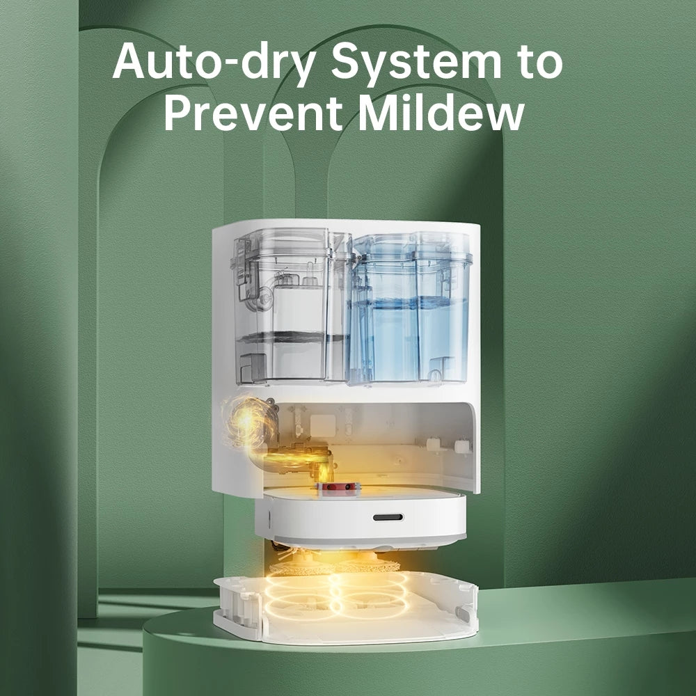 • Automatic Washing & Drying: Intelligent return cleaning the mop, hot air drying, giving you a healthier and cleaner cleaning. And is equipped with a 4L super-large independent clean sewage tank, no need to change the water frequently, free your hands.