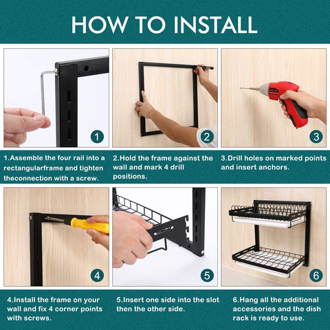 - FREE UP COUNTERTOP SAPCE - This dish drainer puts your walls to work and free up space on your counter for slicing, dicing and kneading the dough